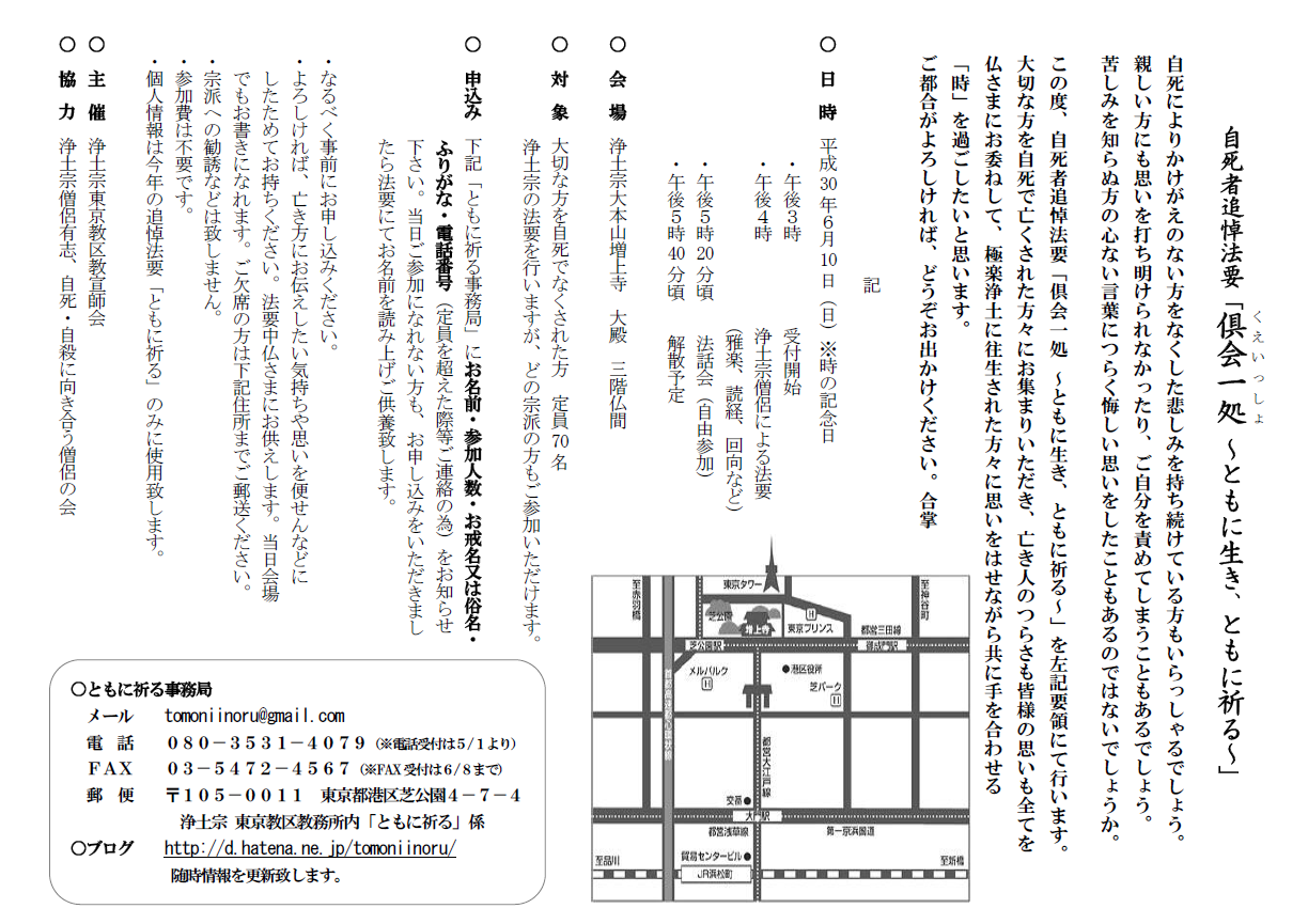 さて、本年も「自死者追悼法要~ともに生き、ともに祈る」を